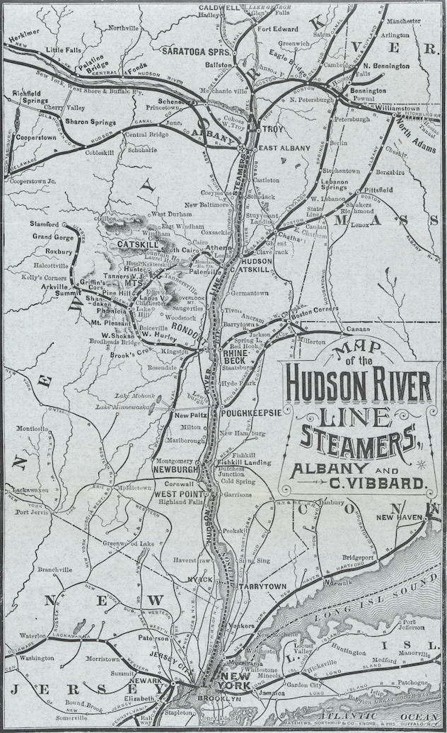 During the late 1800s and early 1900s, large numbers of vacationers traveled via the Hudson River by steamship and disembarked at either Kingston or Catskill to take trains up to the grand hotels in the mountains.