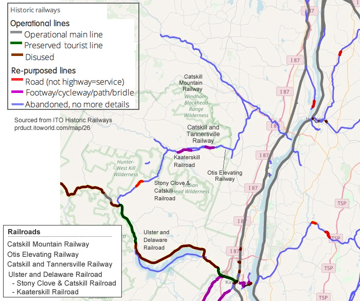 - Sadly a fallen bridge shortened the Catskill Mountain Railway route (see Damage) but the northern section can be ridden on a Rail Bike!