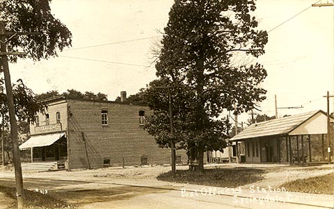 Springdale Post Office ca. 1908 Post office on left, railroad station on right. |