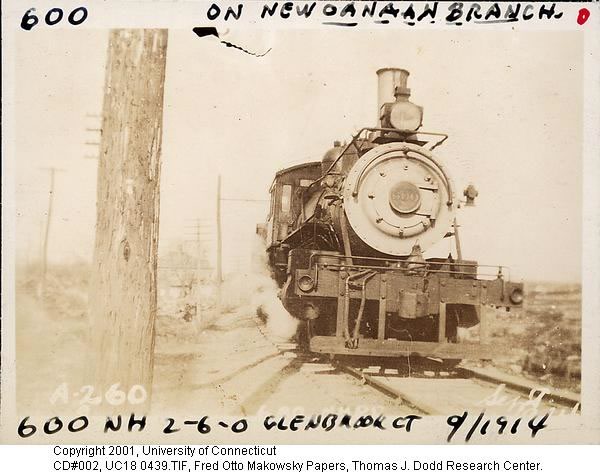 Passenger Train - Glenbrook, CT.Locomotive 600 on New Canaan Branch 600 NH, 2-6-0, Glenbrook CT.