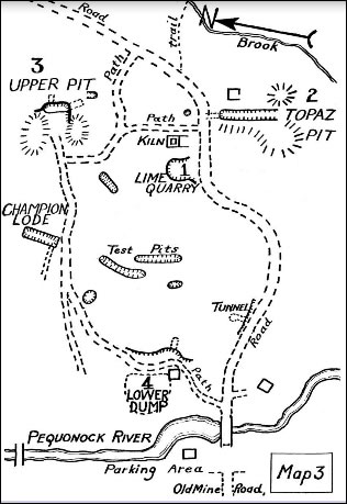 Native Americans originally mined the hill for quartz to make arrow heads for hunting. They named the park Saganawamps which apparently meant "on the side of the hill". The first written mention of minerals at Saganawamps is found in the February 21, 1757 deed giving Howkins Nichols of Stratford a lease for 200 years of 5 acres. Some time around 1818, Ephraim Lane took some samples of rocks he found at Saganawamps to Yale University where it they were identified as tungsten, tellurium, topaz and fluorite. In 1828, Ephraim Lane acquired a lease to 4 acres and later leased the land to Thomas R. Hubbard. The mine has been known as Lane’s Mine and Hubbard Tungsten Mine. It ceased ceasing operations after a suspicious fire in 1916.
