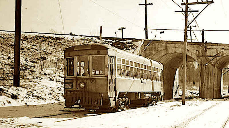This 1930 Topo Map shows the spot and the aerial view clearly demonstrates the trolley bed still exists.